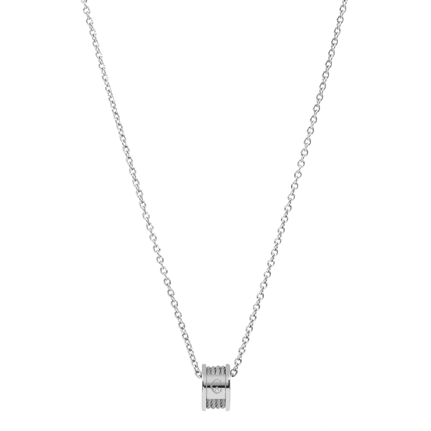 This elegant necklace from Charriol’s bestselling FOREVER collection brilliantly showcases our iconic woven stainless steel cabling. Designed to bring a touch of glamour to your look, it features a barrel-shaped lozenge, inspired by the shape of a couturier’s bobbin. Five ultra-fine lines of our signature cable are framed by a polished yellow gold PVD edge. A modern unisex design, epitomizing our world-renowned craftsmanship and luxurious detailing.