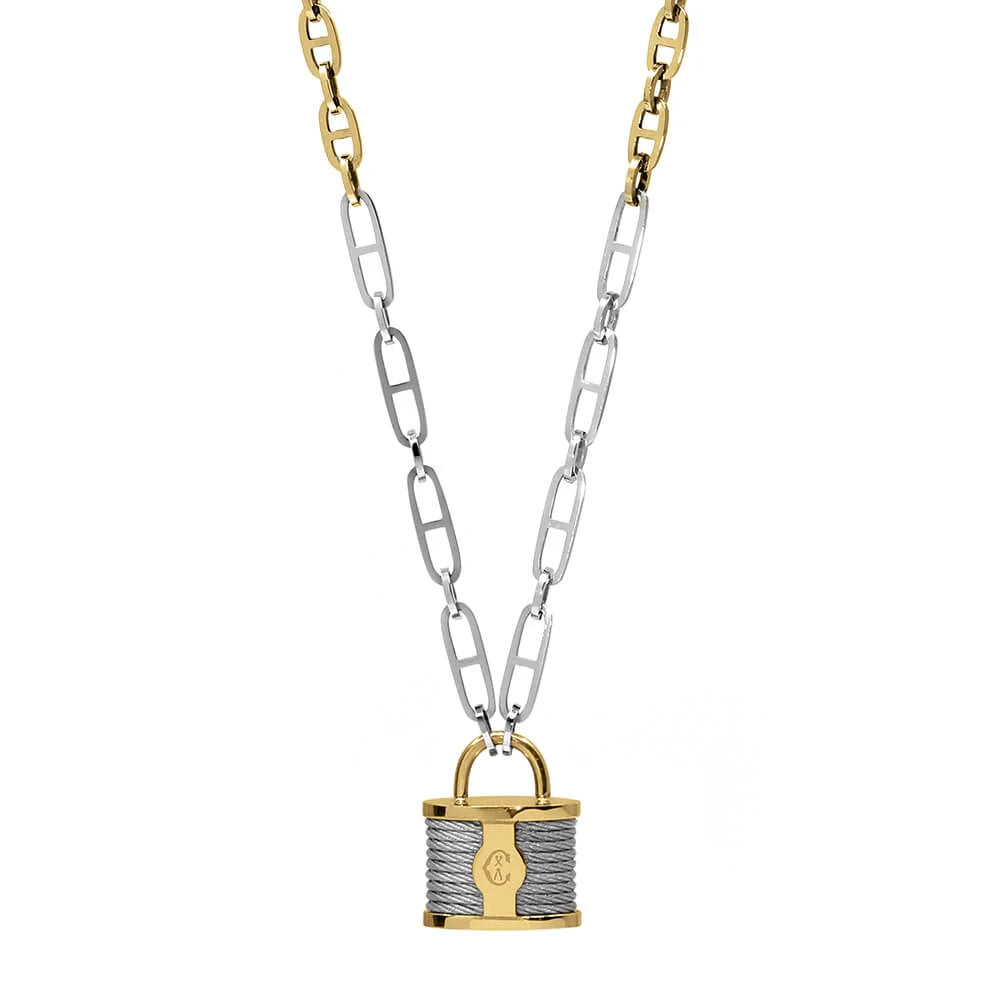 ST TROPEZ, 20MM, QUARTZ CALIBRE, WHITE MOTHER-OF-PEARL WITH 11 DIAMONDS DIAL, STEEL YELLOW GOLD PVD BEZEL, STEEL CABLE BRACELET - Charriol Geneve -  Watch