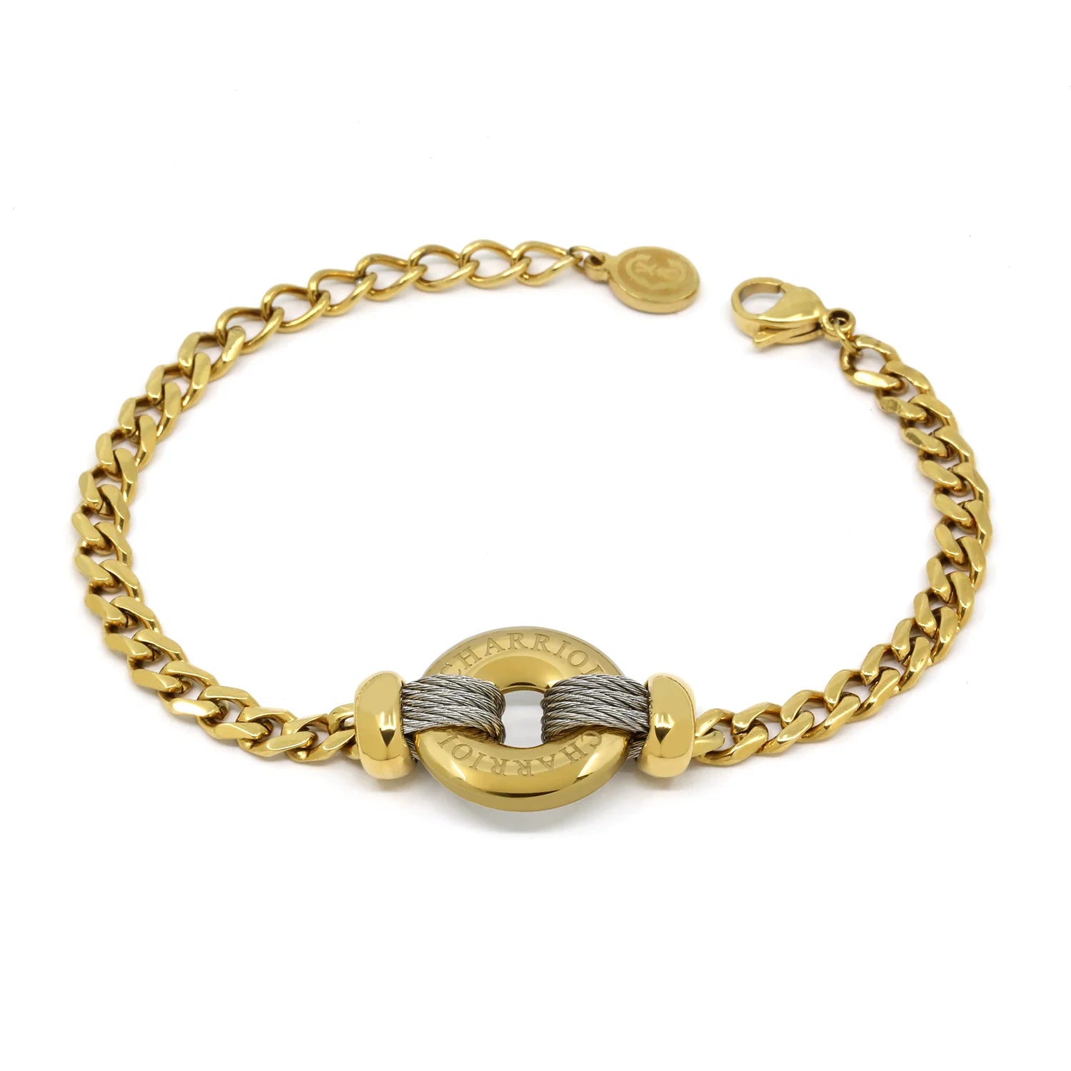 ST TROPEZ, 25MM, QUARTZ CALIBRE, MOTHER-OF-PEARL WITH 11 DIAMONDS DIAL, YELLOW GOLD PVD BEZEL, STEEL CABLE BRACELET - Charriol Geneve -  Watch