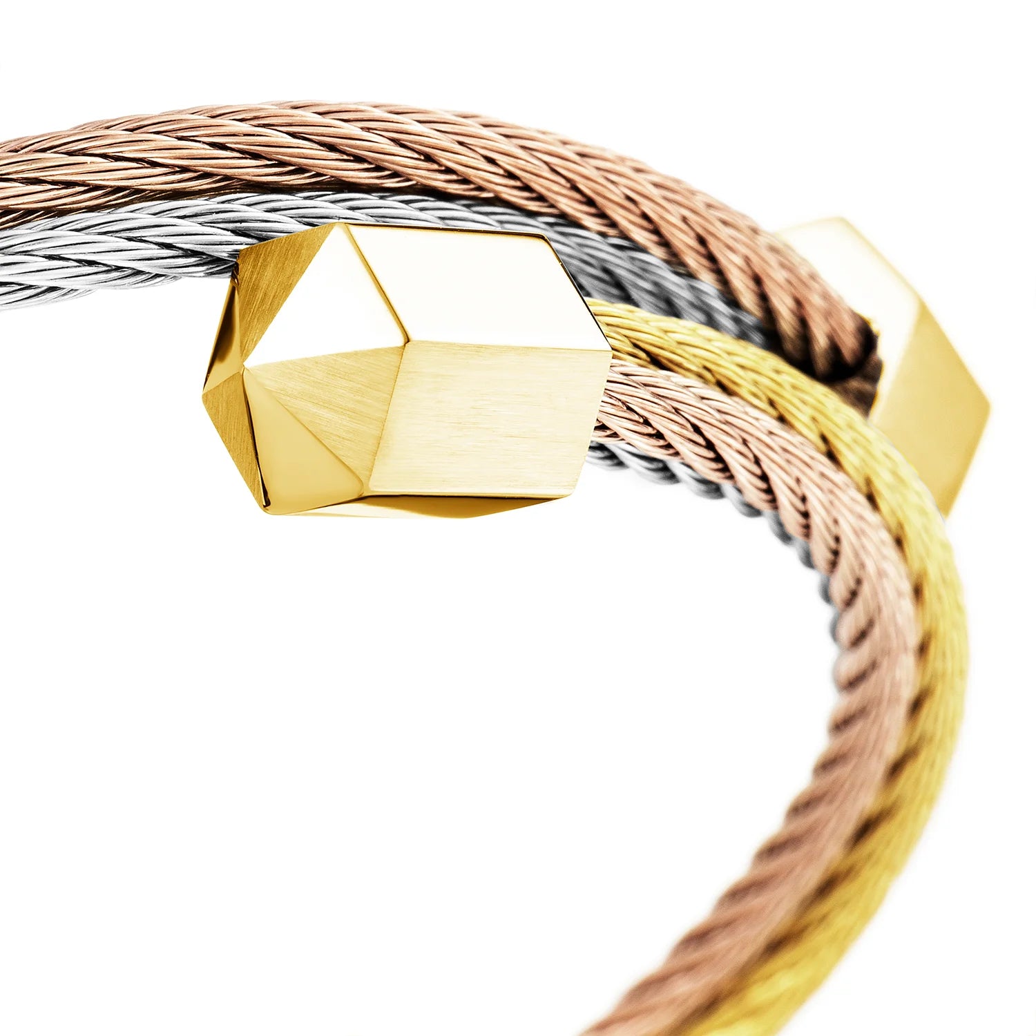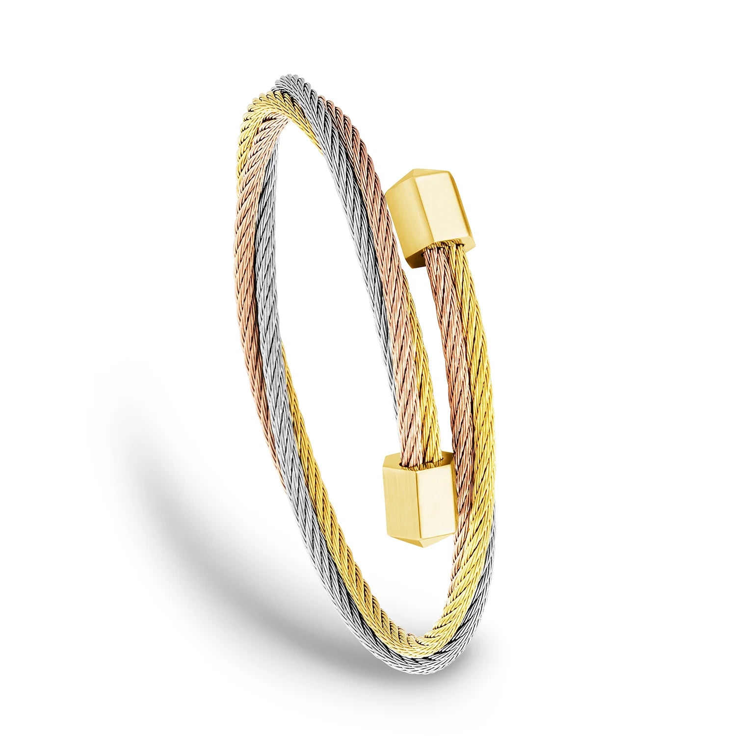 Three-Tone Cable Design: The collection boasts a stunning variety of cable designs in three distinct finishes: Yellow Gold PVD, Rose Gold PVD, and Steel. This unique combination offers a versatile palette, allowing you to mix and match pieces to suit any outfit or occasion.